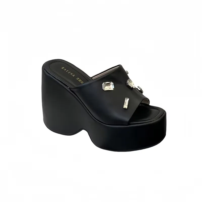 Black Slippers Woman Summer 13CM Extreme High Wedge Platform Shoes Leisure High Heels Wedge Sandals…