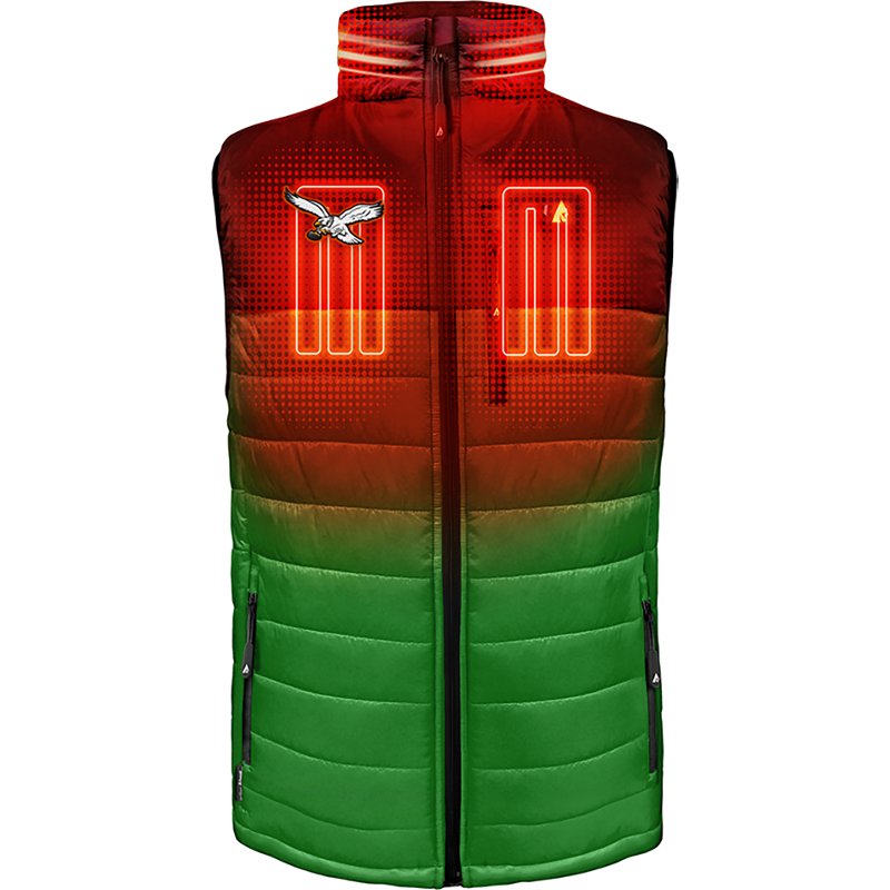 Stay warm while cheering on your favorite team with the ActionHeat Men's Philadelphia Eagles 5V Puffer Heated Vest. The insulated design and battery-powered heating system help you remain comfortable in chilly conditions, while the team graphic lets everyone know who you support on game day. ActionHeat Men's Philadelphia Eagles 5V Puffer Heated Vest Green Black, Large - NFL Adult Outerwear at Academy Sports