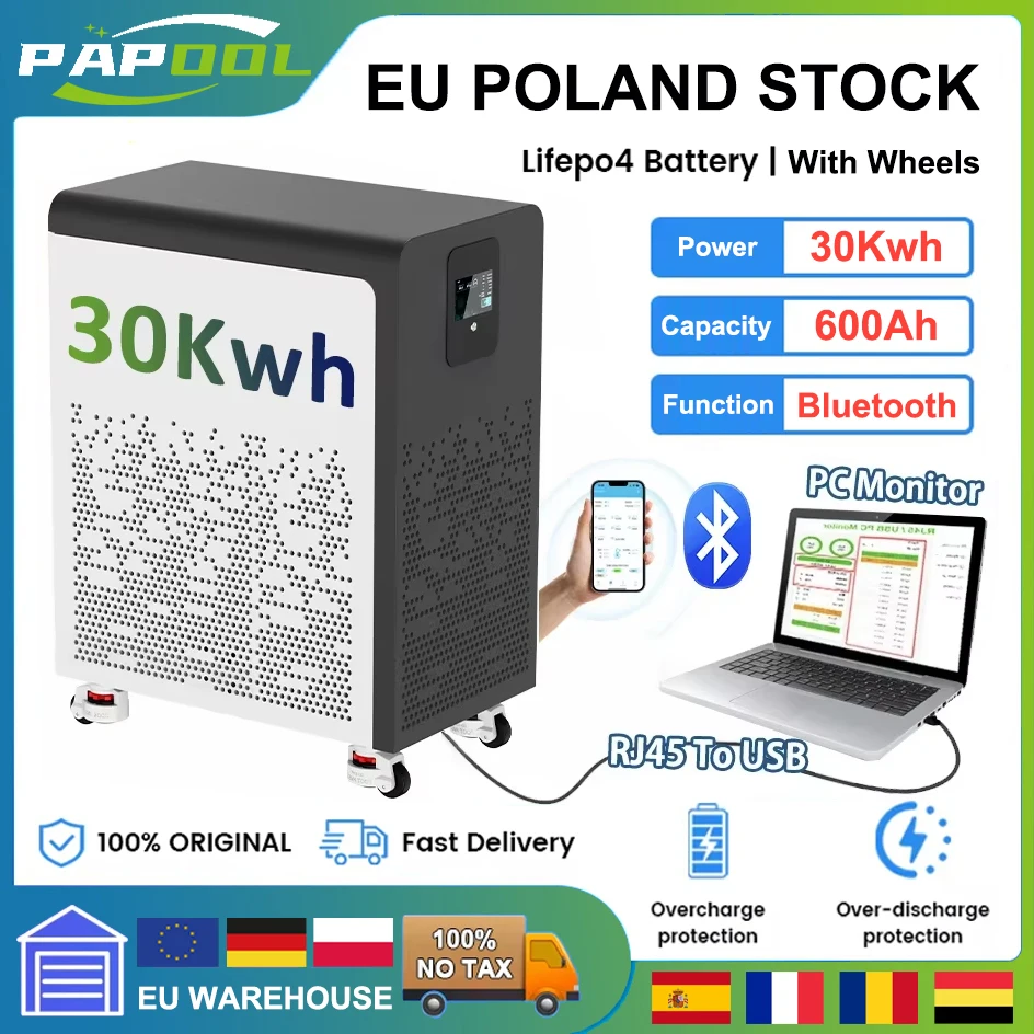 LiFePO4 48V 600Ah 300Ah 100Ah Battery 30Kwh 15Kwh 5Kwh 6500+ Cycles Bluetooth BMS 51.2V AKKU Home S…