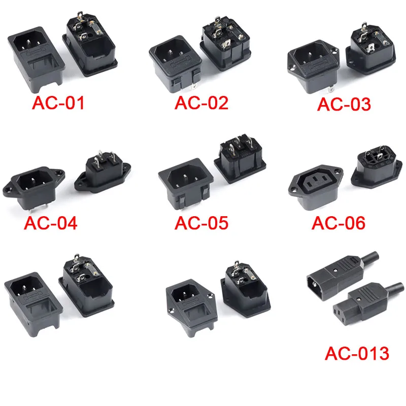 5pcs-1pc AC-01/AC-02/AC-03/AC-04/AC-05/AC-04F/AC-05F/C13/C14 3-Pin Power Plug Socket 250V 10A Fuse …