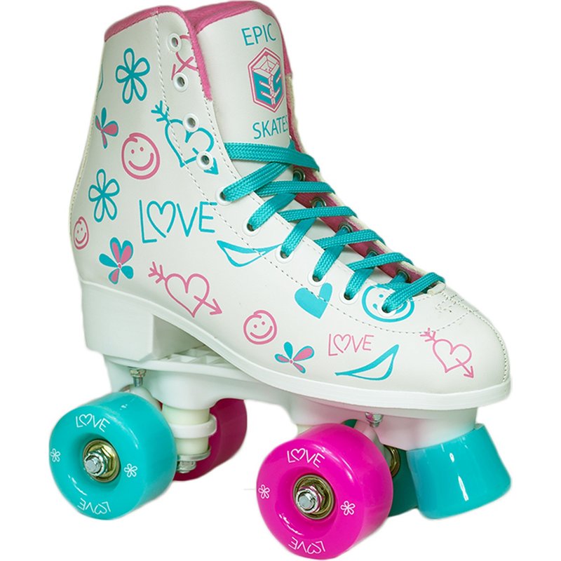 Skate around in style and comfort with the Epic Skates Youth Frost Roller Skates. These classic, high-top style roller skates feature vinyl padded uppers and a thick, padded collar for a comfortable wear. The PU cast wheels are suitable for indoor and outdoor use, and the colorful patterned design with matching laces adds a fun look. Epic Skates Youth Frost Roller Skates, 6 - Youth Skates at Academy Sports