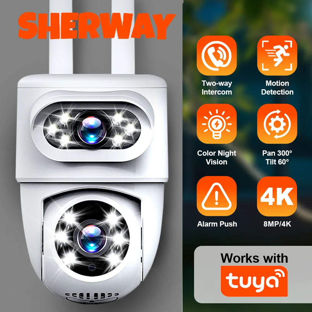 4K 8MP Tuya Dual Lens Wifi Camera Outdoor Security 4MP HD Dual Screen PTZ Camera AI Auto Tracking C…