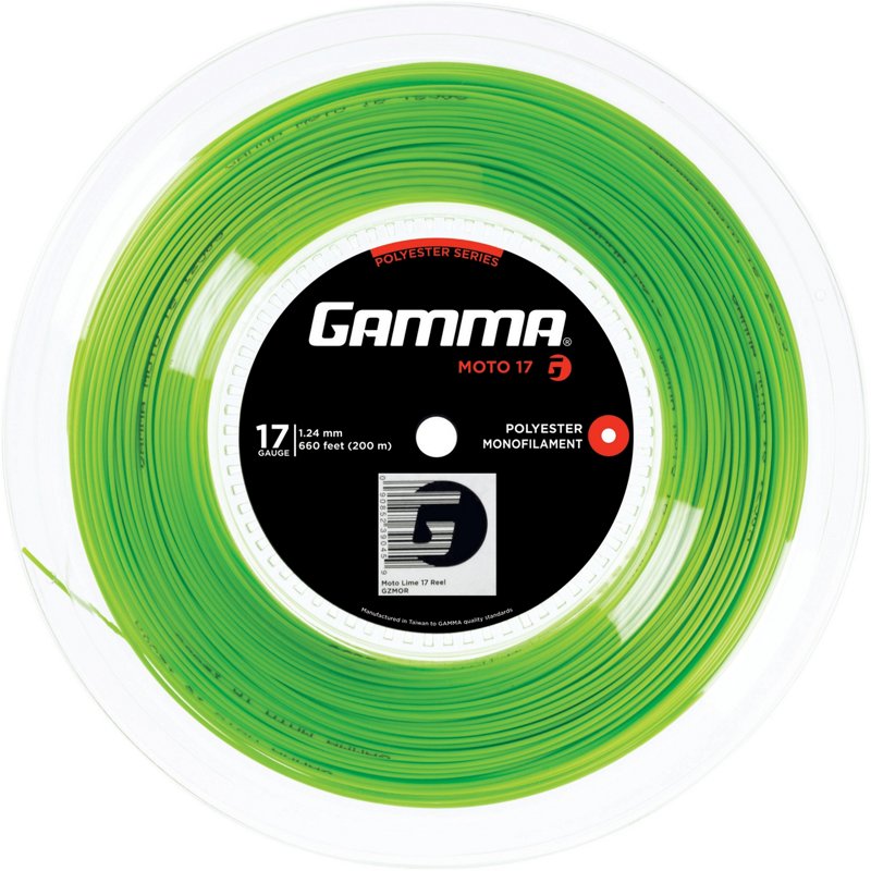 Play your best match yet with the Gamma Moto 17 Gauge Tennis String Reel. This 17 gauge string is made with advanced co-polyester material to provide stiffness, and the heptagonal shape allows you to generate power with plenty of ball bite and spin. Gamma Moto 17 Gauge Tennis String Reel Green Light - Tennis at Academy Sports