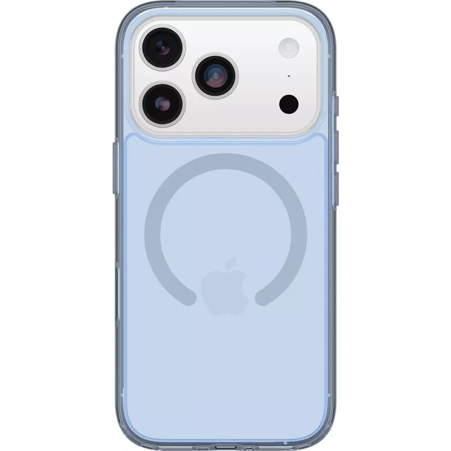 The Symmetry Series Clear Case with MagSafe for iPhone 17 Pro combines a sleek design with strong protection. Its built-in magnets snap firmly to MagSafe chargers and accessories, ensuring a secure connection. This case exceeds military drop standards by up to three times¹, providing superior impact protection. It features raised edges around the camera and screen to protect them from impact and scratches and the ultra-sleek design complements your phone's look. You'll enjoy unhindered access to all phone functions with bounce-back buttons that react to touch. In addition to protecting your phone, this case is made in part with up to 40% recycled plastic. It also resists scratches to keep its like-new look longer. For added versatility, built-in anchors let you connect phone straps and charms, and it's equipped with an integrated camera control button for seamless interaction. The Symmetry Series Clear Case with MagSafe for iPhone 17 Pro is backed by a manufacturer's limited warranty for lasting peace of mind and works with OtterBox screen protection for even more defense.¹Based on independent testing. | OtterBox Symmetry Series Clear Case with MagSafe for iPhone 17 Pro - Blue Bliss | Verizon
