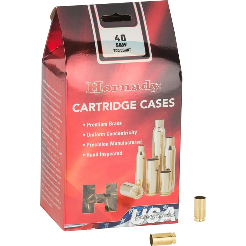 Stay prepared with the Hornady .40 S&W Unprimed Cases. These cases feature a uniform wall thickness and provide consistent weight and capacity. Tight wall concentricity delivers proper bullet seating in the case and in the chamber for great velocity and accuracy. 200-case box. Hornady .40 S&W Unprimed Cases - Reloading at Academy Sports