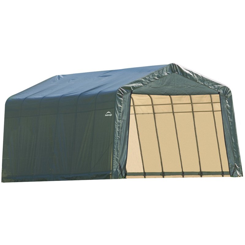 Great for storing vehicles, boats, tractors, large equipment or bulk supplies, the ShelterLogic 13' x 24' Peak Style Shelter is designed with a high-quality frame and fabric to withstand the elements. ShelterLock stabilizers at every rib connection strengthen and secure the frame. Easy to install. ShelterLogic 13' x 24' Peak Style Shelter Green - Canopy/Car Ports at Academy Sports