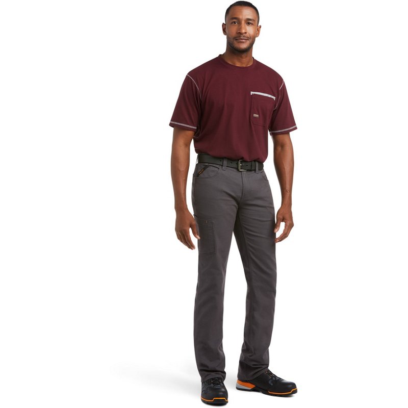 Stay comfortable all day in the Ariat Men's Rebar M7 Slim DuraStretch Made Tough Straight Pants. These straight-leg pants are made from DuraStretch⢠fabric for durability and flexibility. They are triple-needle stitched for added durability and have a slim fit through the seat and thighs. Ariat Men's Rebar M7 Slim DuraStretch Made Tough Straight Pants Gray, 36" - Men's Work Bottoms at Academy Sports