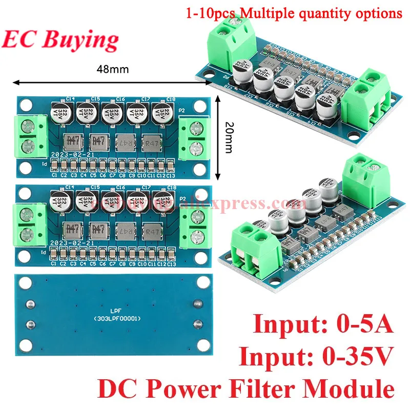 5Pcs/1pc DC Power Filter Board Module Low Pass Stabilization Voltage Reducing Ripple 0-35V 0-5A Low…