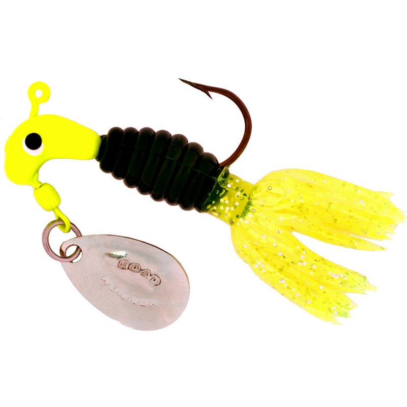 The Road Runner® Crappie Thunder® 2" Soft Baits 2-Pack feature solid bodies and flared tails that ensure a slow descent. Hook size: 1. Road Runner Crappie Thunder 2" Soft Baits 2-Pack Black, 1/8 Oz - Frsh Wtr Panfish Bait at Academy Sports