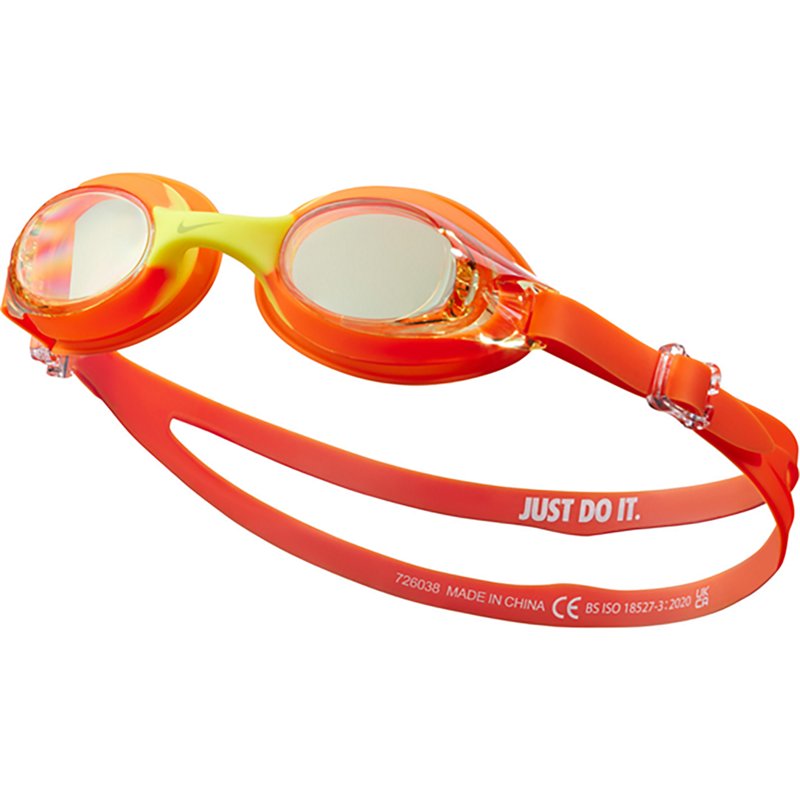 Swim towards your next goal with the Nike Kids' Lil Swoosh Goggles. The wide angle lenses provide improved peripheral vision, while the 1-piece frame offers soft comfort. The silicone split head strap ensures a snug fit. Nike Kids' Lil Swoosh Goggles Safety Orange - Swim And Diving Accessories at Academy Sports