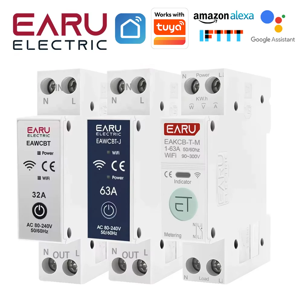 Tuya WiFi Smart Circuit Breaker MCB 1P+N 63A Timer Power Energy kWh Voltage Current Meter Protector…