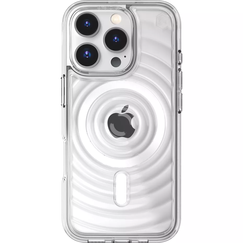 The Reawaken Ripple Case with MagSafe for iPhone 16 Pro Max is designed to calm your mind. Crafted with a contoured surface that provides focus-freeing touch that feels natural and effortless. Its impact-absorbing TPU and high-clarity polycarbonate construction ensure durability while meeting rigorous drop protection standards. Equipped with a robust MagSafe magnet array, it securely connects to your MagSafe accessories. Plus, the innovative ClearShell Plating features self-repairing technology to minimize scratches, maintaining a pristine look. With a raised bezel safeguarding your lens and smooth corners for a comfortable grip, this case is designed for seamless everyday use. Enjoy full button functionality with independent buttons, and experience easy pocket stowage with its sleek design. | STM Reawaken Ripple Case with MagSafe for iPhone 16 Pro Max - Clear | Verizon