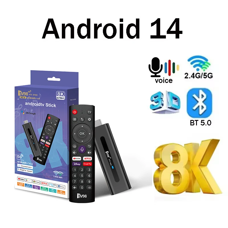 TV98 ATV Stick Android 14 Allwinner H313 Quad Core Cortex Support 8K 4K BT5.0 WiFi 6 Voice Remote S…