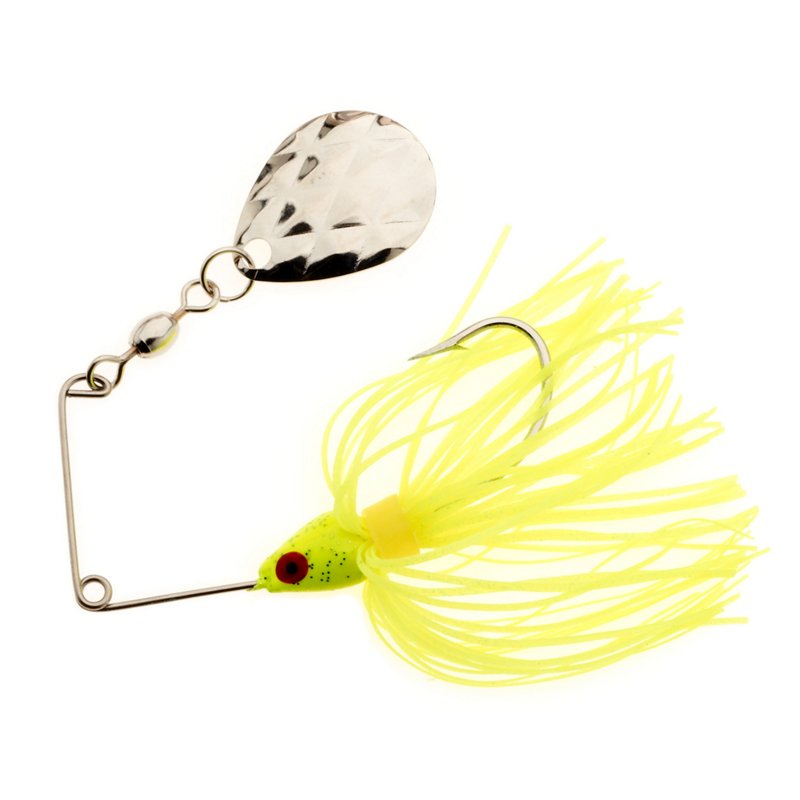 The Strike King Mini-King® 1/8 oz Single Colorado Blade Spinnerbait is ideal for kids and anglers who use light rods. The Colorado Diamond blade's rotating action and the Diamond Dust head and silicone skirt attract many bites. Strike King Mini-King 1/8 oz Single Colorado Blade Spinnerbait Chartreuse - Frsh Water Wire Baits at Academy Sports