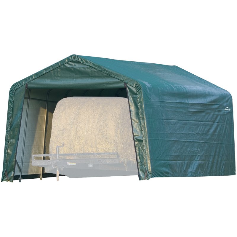 Keep horses, hay, farm equipment and more inside the ShelterLogic Peak Style 12' x 20' x 8' Storage Shelter. This shelter is designed with a high-grade steel frame for rust and corrosion resistance and a polyethylene cover that is waterproof and UV treated. The Ratchet Tite⢠Tensioning System offers simple installation, and the shelter features double zippered door panels. ShelterLogic Peak Style 12' x 20' x 8' Storage Shelter White - Canopy/Car Ports at Academy Sports
