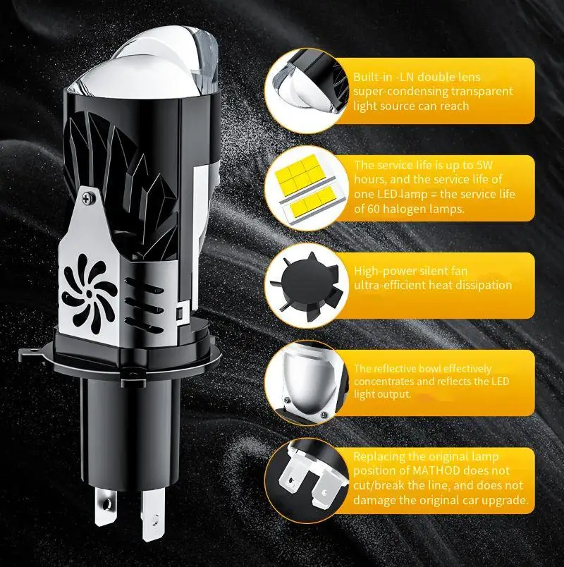 H4 Bi Led Projector Lens 12V 30W 6000K Hi Lo Beam For Motorcycle Car Direct Plug