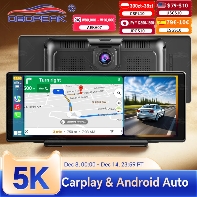 Dash Cam K8s 5K+1080P Dual Lens GPS Navigation 5G Wifi Wireless Carplay & Android Auto Super Night …