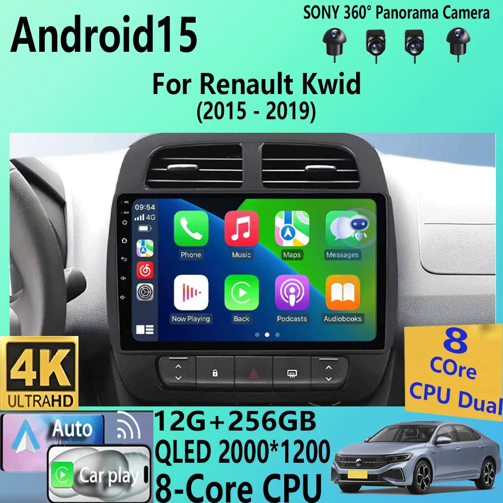 Android 15 Carplay Auto WIFI+4G For Renault KWID K-ZE Dacia spring 2015-2019 Car Radio Multimedia V…