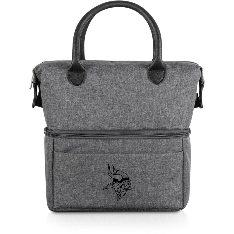 Even when you are at work, you can let others know you support the Vikings with your lunch packed in the Picnic Time Minnesota Vikings Urban Two-Tier Lunch Bag Cooler. The insulated interior makes sure your hot or cold foods maintain their ideal temperatures, and the team logo highlights your fandom. A compartment on the top and a zippered pocket on the front let you keep your dry foods away from condensation, and the leatherette handles make it easy to grab your lunch and go with ease. Picnic Time Minnesota Vikings Urban Two-Tier Lunch Bag Cooler - Pro Licensed Novelty at Academy Sports