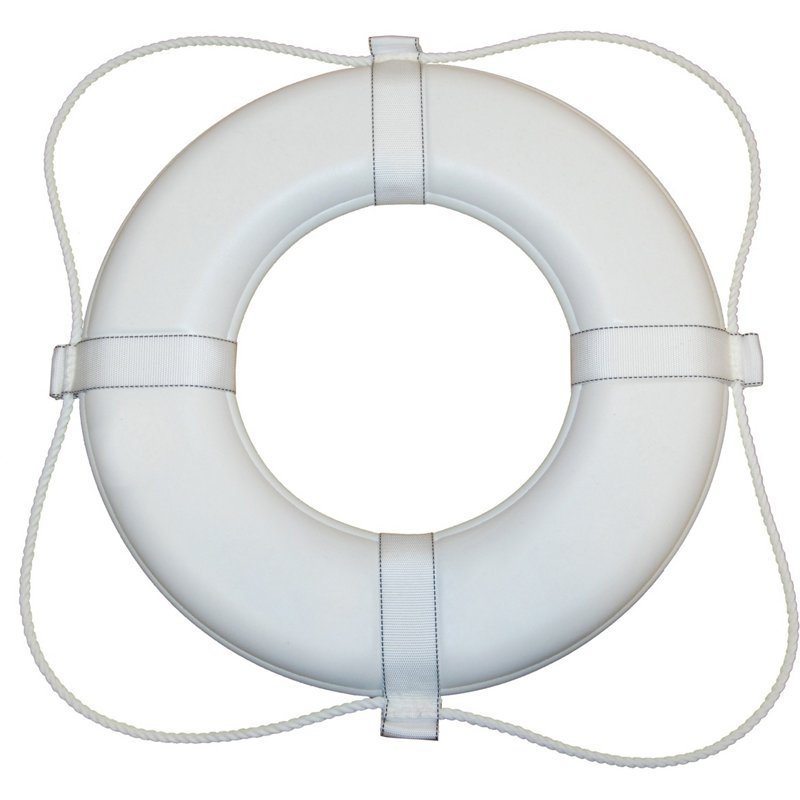 Stay protected on the open seas with the TaylorMade 24" Foam Life Ring Buoy. Lined with energy-absorbent vinyl for abrasion-resistance, this life ring contains unicellular polyurethane foam for ensuring buoyancy. Floating polypropylene grab line contains UV stabilizers to enhance sunlight-resistance, and sewn in beckets keep the grab line secure. This buoy also meets U.S. Coast Guard approval for both commercial and recreational use. TaylorMade 24" Foam Life Ring Buoy White - Flotation at Academy Sports