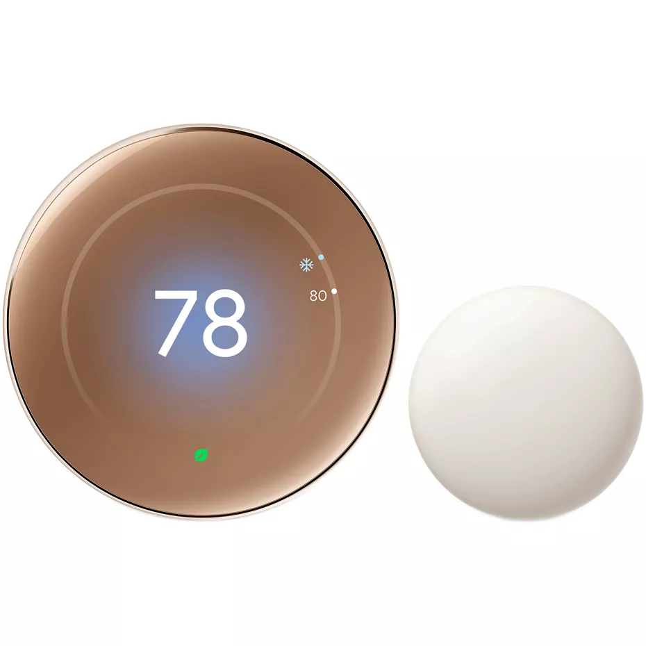 It's got your back, HVAC. System Health Monitor looks out for your heating and cooling system, helps catch many issues early, and can send an alert if something needs attention.¹ Your HVAC heads-up. When it's time to change your air filter, you'll get an alert based on actual use.¹ The schedule that programs itself. Smart Schedule learns the temps you like, and when you like them.² Teaming up with Mother Nature. Natural heating and cooling learn how the outside temperature affects your home – like it warms up on sunny days.² Then it pauses your system to help you save. Helps save energy while you're away. Adaptive Eco helps find an energy-saving temperature based on your home and the weather.² Save when you're away, and come back to a comfy home. The right temp, right where you want it. Put the included Nest Temperature Sensor (2nd gen) in the room that matters most. The Thermostat helps make sure it's the exact temperature you want it to be. Smart is in the air. To save energy, smart ventilation brings in outdoor air when air quality is healthy and it's most efficient.2,3 It's easy to install. It is designed for you to install yourself, usually in 40 minutes or less. Just follow the step-by-step instructions in the Google Home app.4 No worries about wiring. The Power Sharing feature gets enough power from your existing thermostat wiring. It doesn't require a C-wire for installation in most homes.4 Humidity? No sweat. Humidity Helper can help to keep humidity at the right level so you stay comfortable.¹ And it reduces the risks of condensation and mold. 2,5 Clean energy made simple. Energy Shift can automatically shift your energy use to cleaner or cheaper times.6 One great app for your whole home. Control your Thermostat (4th gen) and other compatible devices with the Google Home app.7 ¹ Alerts can notify you of a potential issue with an eligible HVAC system. They're meant to provide helpful information, not an endorsement, representation, or warranty of any kind about the health of your HVAC system. Alerts aren't intended to replace a diagnosis by a qualified HVAC professional. ² Google Home app required. ³ Requires a compatible HVAC ventilation system. 4 The Nest Learning Thermostat (4th gen) is designed to work in most homes without a common (C) wire. Check compatibility at g.co/nest/works and see g.co/nest/cwire for details. 5 Requires air conditioner, heat pump, or central humidifier or dehumidifier. 6 Energy Shift makes small adjustments to your Nest Learning Thermostat set points, which can shift electricity usage from your heating and cooling system. Learn more at support.google.com/googlenest/answer/10975756?hl=en. Only available in areas served by major continental US grids (see g.co/nest/repwr). Prioritize less expensive energy only available for customers on certain electric utility time-of-use rates (check availability at g.co/nest/retou). 7 Remote control and mobile notifications require working internet and Wi-Fi. | Google Learning Thermostat (4th gen) - Gold | Verizon