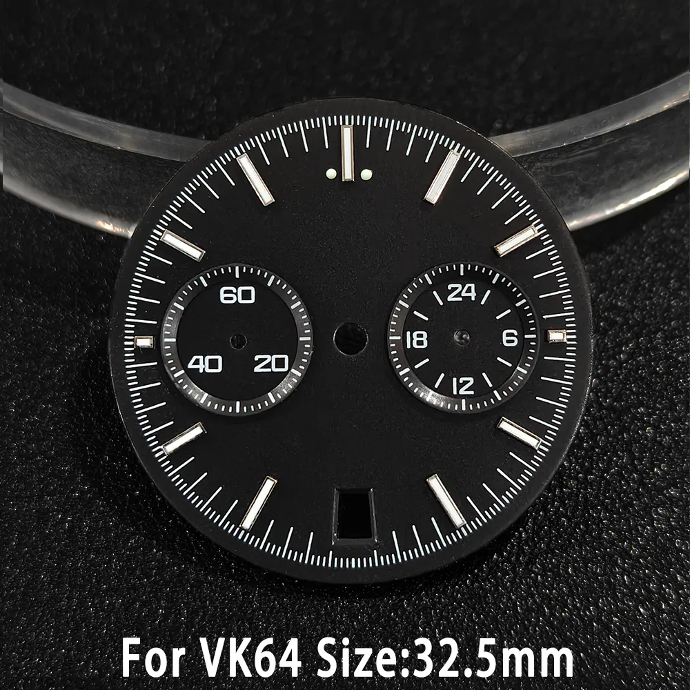 32.5MM Both eyes Watch Dial Suitable For VK64 Quartz Movement C3 Green Luminous Dials Men Watch Hig…
