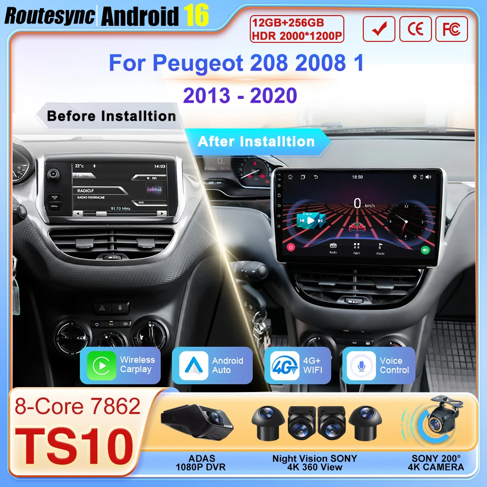 Car Radio Player Android 15 2din For Peugeot 208 2008 1 2013-2020 GPS Navigation Wireless Android A…