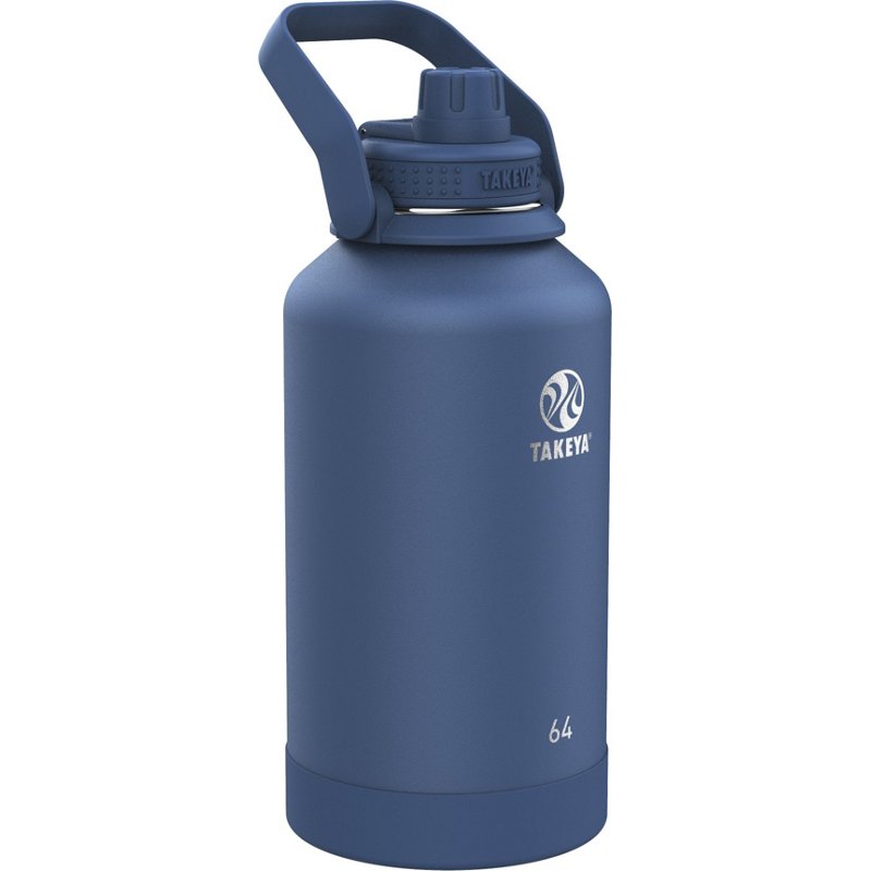 Keep your favorite beverage ready to go with the Takeya Actives Insulated Spout Lid 64 oz Wide Handle Water Bottle. The stainless steel construction offers durability and features a powder coated, double-wall design for a sure grip. The vacuum insulation maintains hot or cold drink temperatures for hours, while the leakproof, Insulated Spout Lid⢠helps ensure a convenient and comfortable drinking experience. Takeya Actives Insulated Spout Lid 64 oz Wide Handle Water Bottle Blue Dark - Thermos/Cups &koozies at Academy Sports