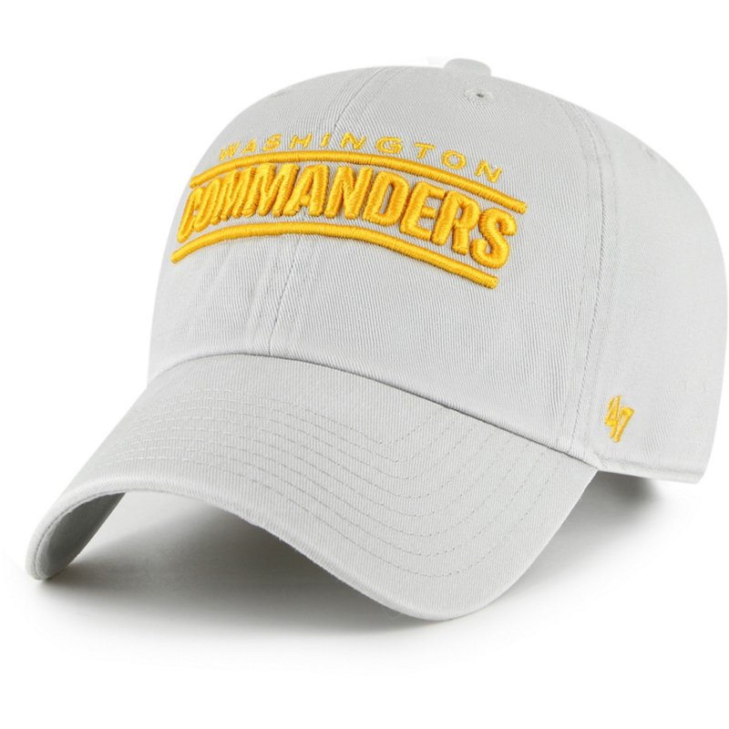Show off your team pride in style in the '47 Washington Commanders Script Clean Up Cap. This cap sports a relaxed fit and curved silhouette with an adjustable strapback closure. The garment-washed cotton material allows for comfort as well as style. '47 47 Washington Commanders Script Clean Up Cap Grey - NFL Caps at Academy Sports