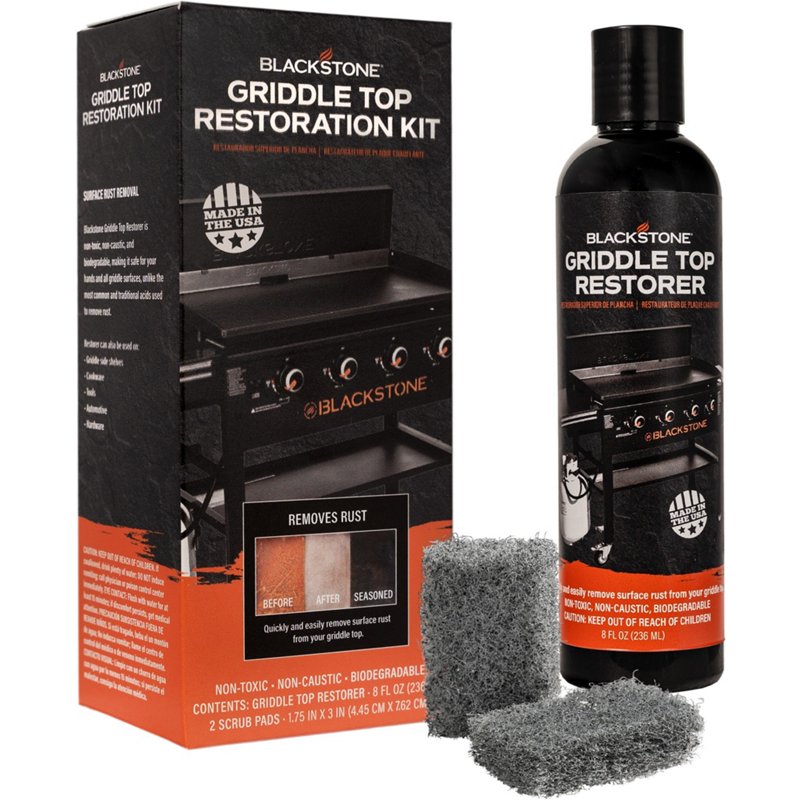 Bring your griddle back to life with the Blackstone Restoration Kit. The degreaser removes oils, residue and build-up with the help of steel wool scrubbers. The restorer fluid refreshes your griddle surface for future cooking endeavors. Blackstone Restoration Kit - Bbq Accessories at Academy Sports