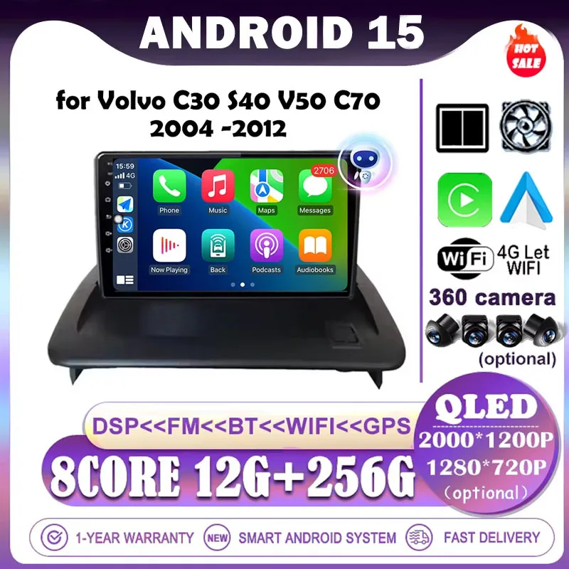 for Volvo C30 S40 V50 C70 2004 - 2012 Car Multimedia Player Android 15 WIFI Carplay QLED Screen Rad…