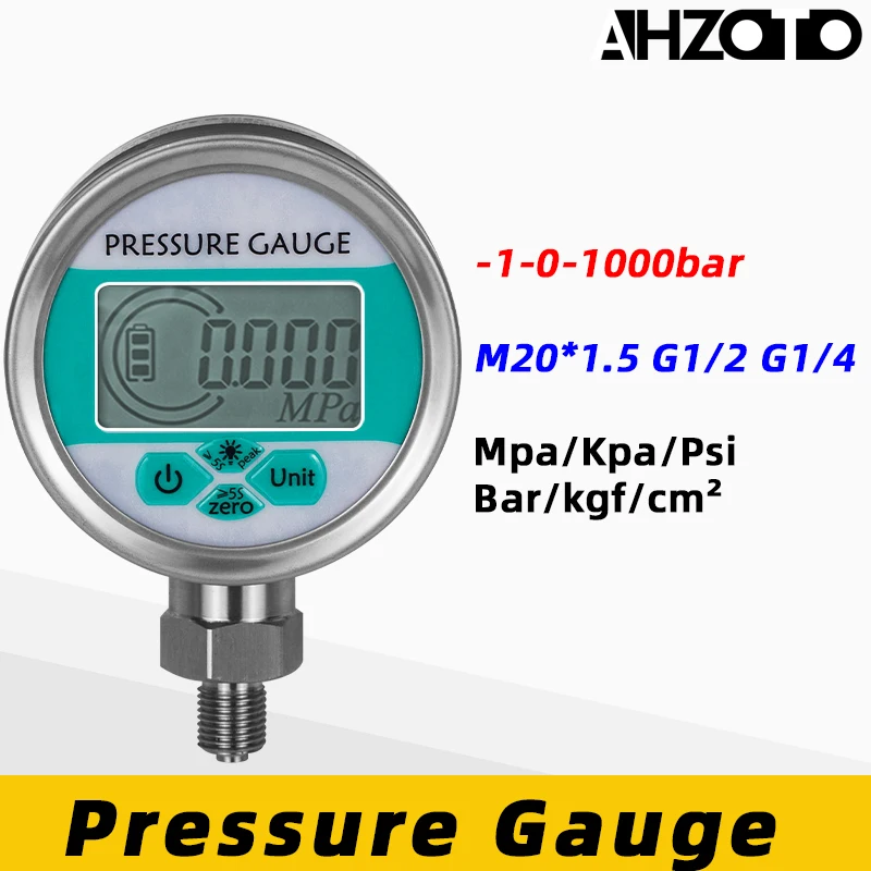 Pressure Gauge 0-1000bar Water Gas Oil Pressure Sensor Negative Pressuse With Backlight LCD Display…