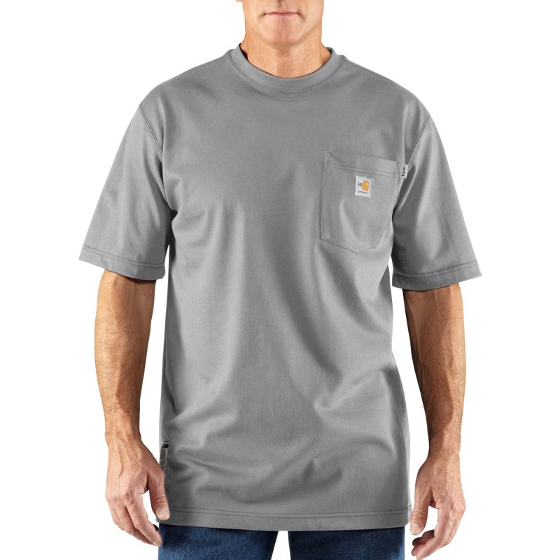 Be ready for the work day in the Carhartt Men's Force Flame-Resistant T-shirt. The 100% cotton FR jersey fabric will help keep you safe on the job, and the Forceî and FastDryî technologies offer moisture-wicking and odor-fighting properties as you focus on the task at hand. Carhartt Men's Force Flame-Resistant T-Shirt Gray, Large - Men's Longsleeve Work Shirts at Academy Sports