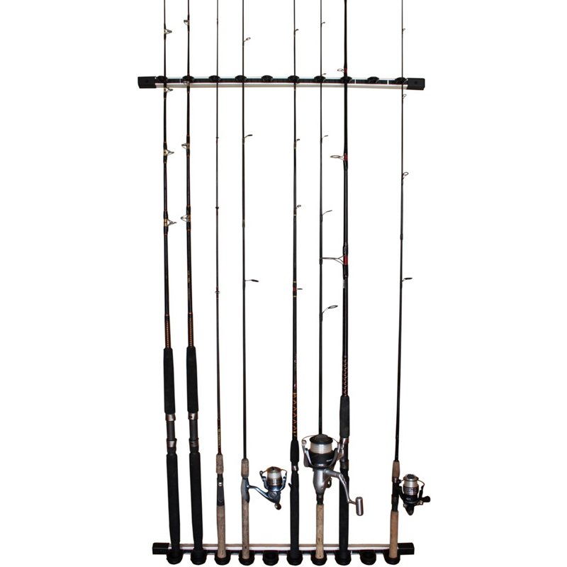 Upgrade your rod storage with the Rush Creek 3-in-1 Aluminum Modular 10-Rod Wall and Ceiling Rack. The heavy-duty aluminum sliding rack can be mounted to the ceiling or wall for versatile use, and the removable end caps allow you to attach additional racks to increase your storage. The removable J-clips securely hold your rod and reel combos in place, and the rack is adjustable to fit a number of rod sizes. Rush Creek 3-in-1 Aluminum Modular 10-Rod Wall and Ceiling Rack - Rod And Reel Storage at Academy Sports