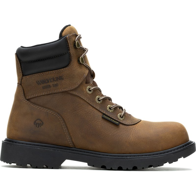 Tackle tough work tasks in the Wolverine Men's Iron Ridge EH Steel Toe Lace Up Work Boots, which feature full-grain leather uppers for durability. Steel toes provide protection for your feet, while oil and slip resistance help ensure your safety on the job. Recycled PU foam insoles cushion your feet. PVC midsoles. Wave Mesh linings. Waterproof. Wolverine Men's Iron Ridge Steel EH Steel Toe Lace Up Work Boots Brown, 9 - Lace St Work Boots at Academy Sports