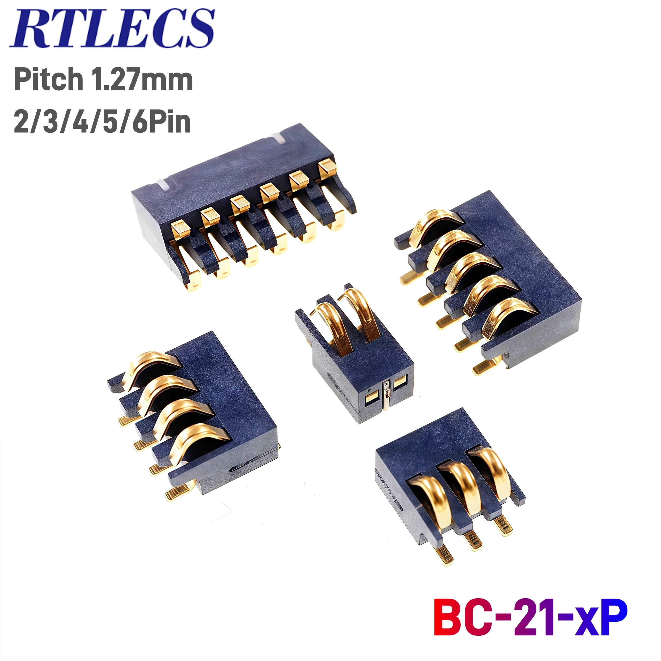 5 20 100 Pieces SMT Spring Press Battery Connector 1.27 MM Pitch 2 3 4 5 6 Way Contact Power Gold P…